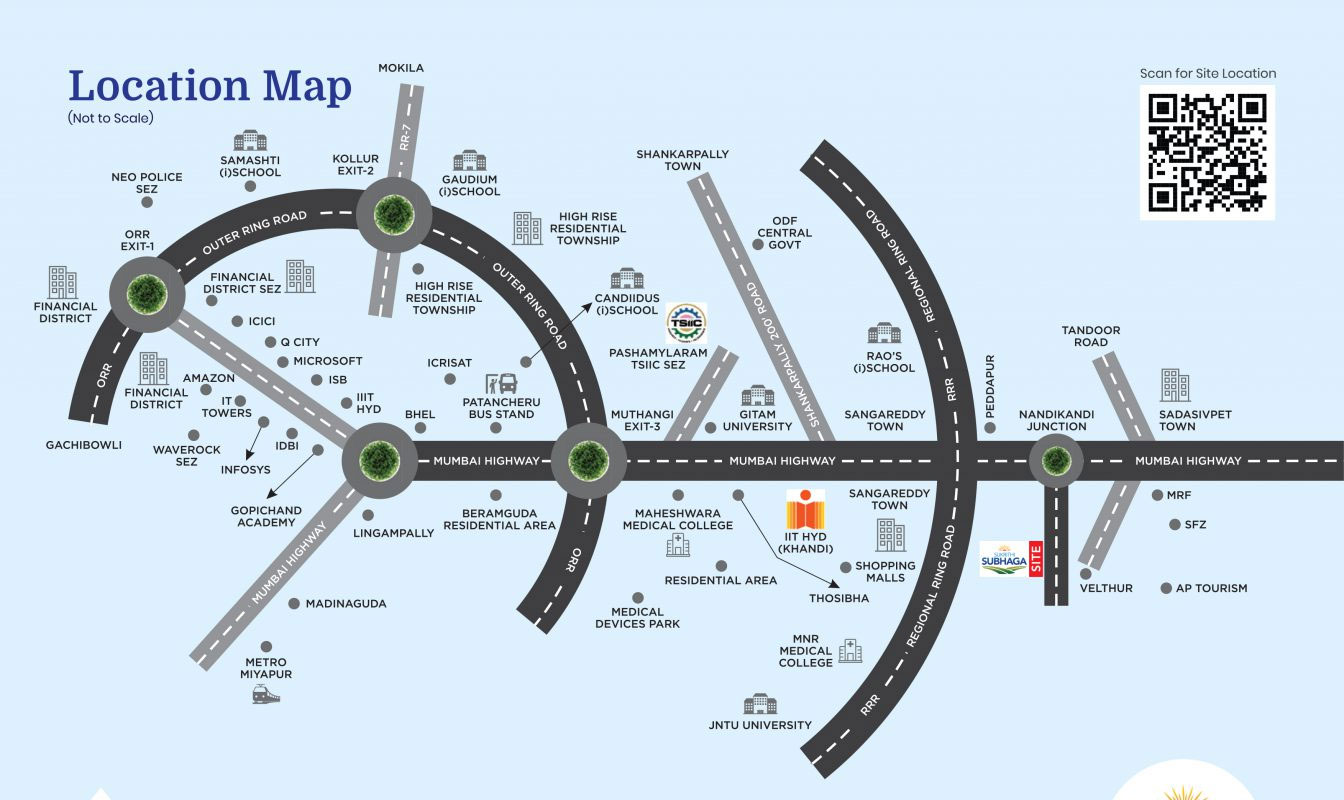 • Mumbai highway is the main connect to the IT hub based in West Hyderabad. Thousands of employees have bought in areas surrounding the highway marking it as an authentic residential area.